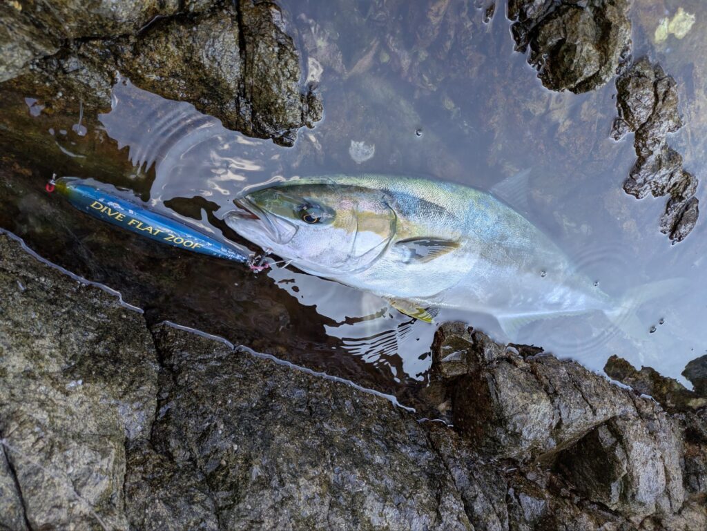 この日も磯で最近お気に入りのダイブフラットで80センチクラスを1本。