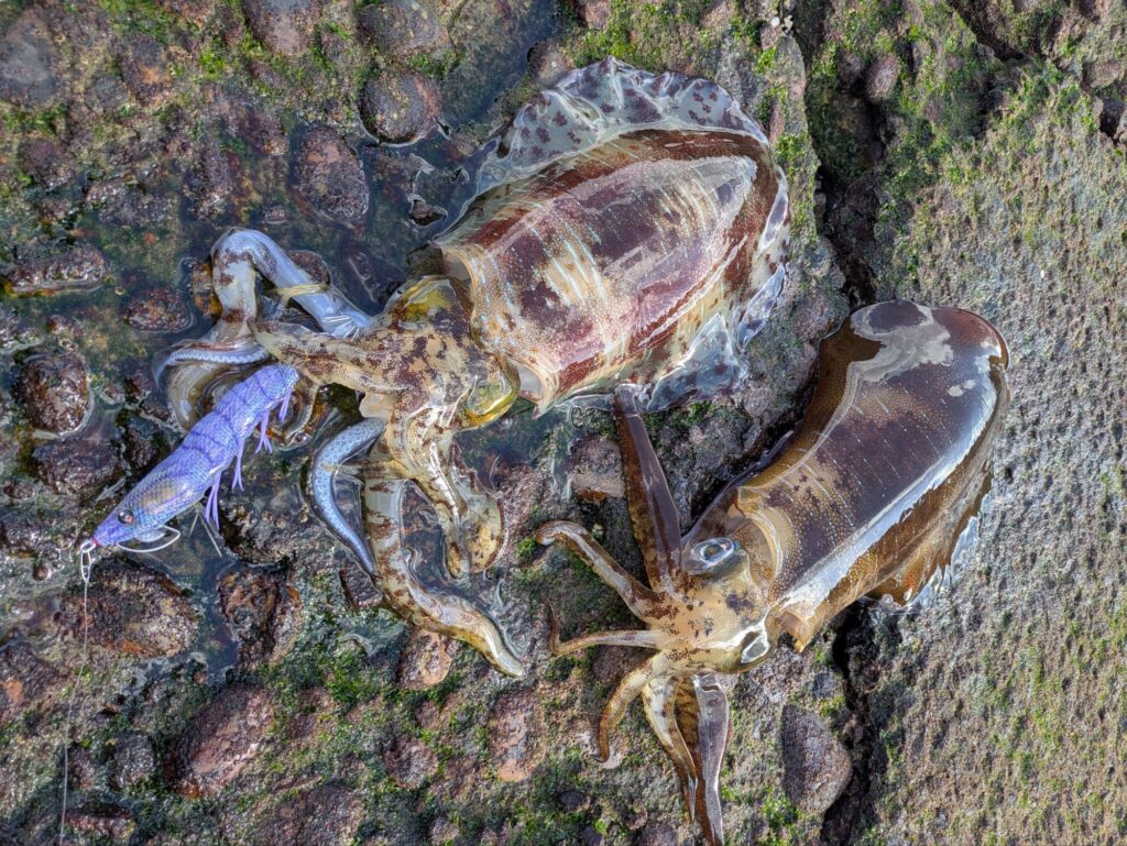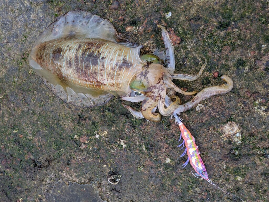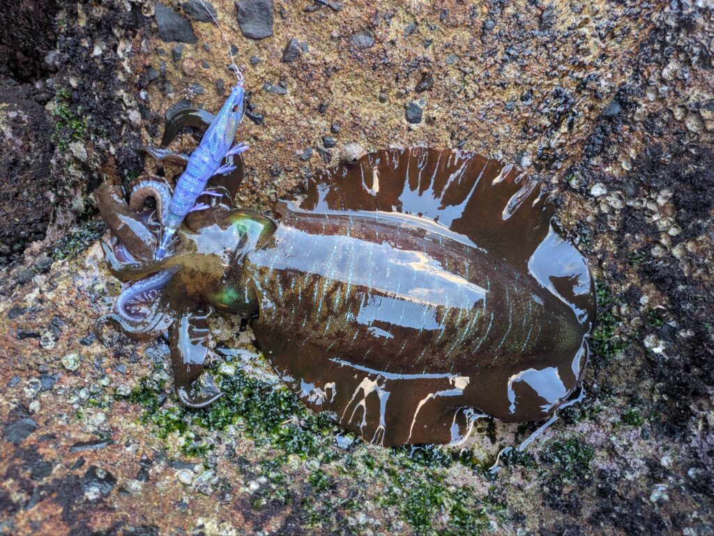 僕があまり上手じゃないからか地形やストラクチャーについてるイカはうまく釣ることができないので、流れの中のイカを釣ってます。