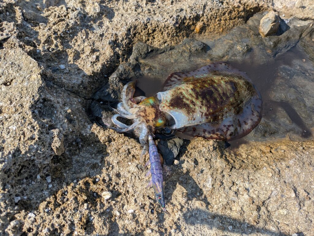 午前と午後で共通してたのはエギが流れを掴まえた時だけアタリが出たことでした。
